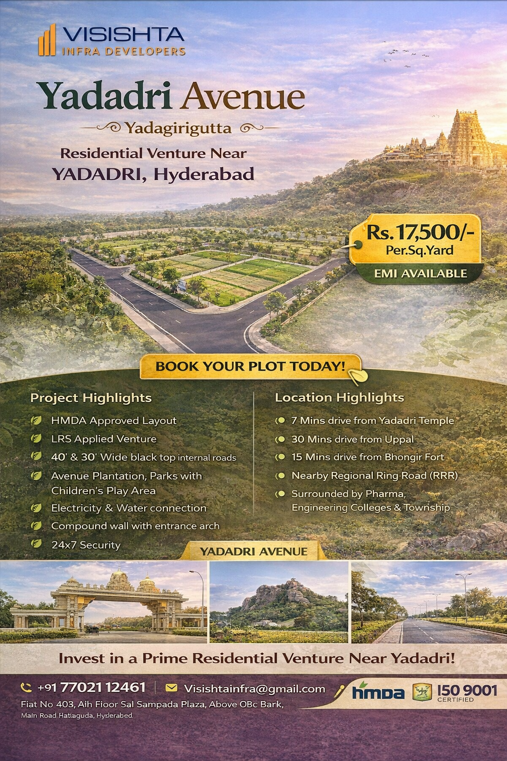 yadadri Avenue is an ongoing residential plotted layout strategically located in the Yadadri growth corridor. Surrounded by expanding infrastructure, highway connectivity, and increasing residential demand, this project offers excellent potential for long-term appreciation and secure land ownership in one of Telangana’s fastest developing regions.